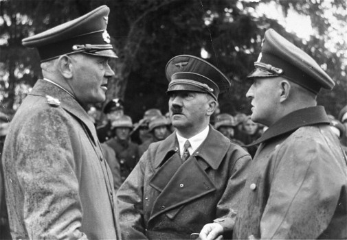 Adolf Hitler at the Wehrmacht maneuvers with Werner von Fritsch and Colonel Hossbach