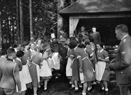 Adolf Hitler meets a group of Arbeitsmaiden (RAD worker girls) in Führerhauptquartier Tannenberg