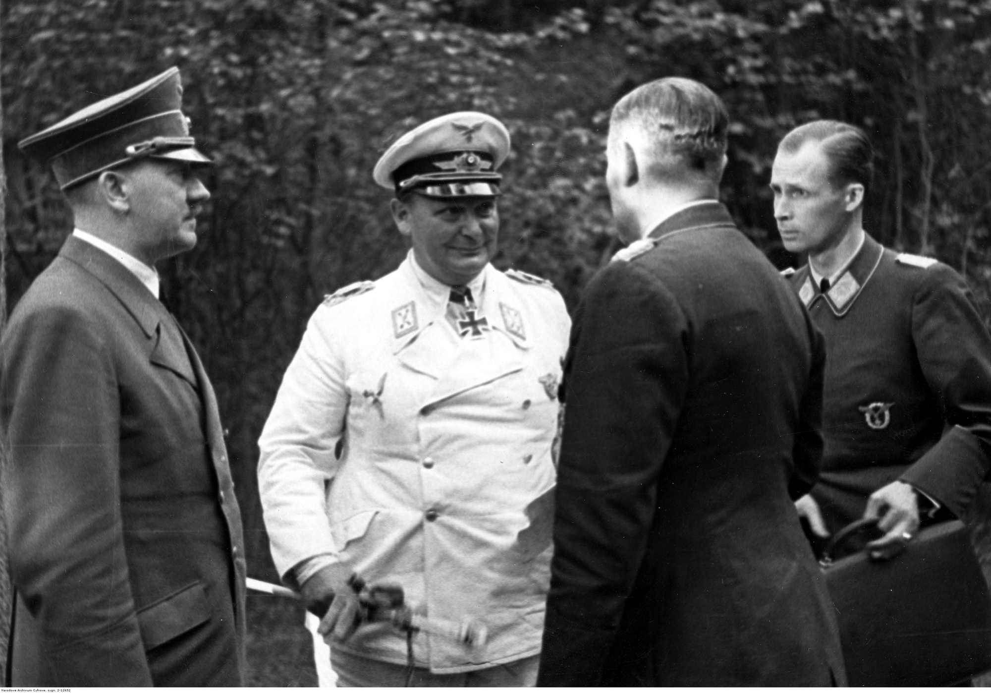 Meeting with Goering and general Karl-Heinrich Bodenschatz, liaison officer between the two leaders of the Party, in the forest of the Wolfschanze