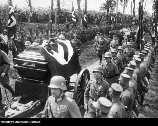 Adolf Hitler and officials salute at the funeral of Julius Schreck in Gräfelfing near Munich