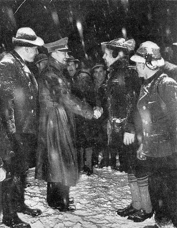 Adolf Hitler greets the Berchtesgadener Weihnachtsschützen on New Year's Eve