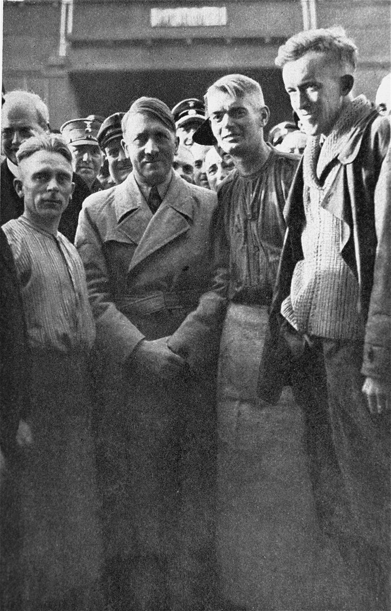 Adolf Hitler with workers at the Siemens factory