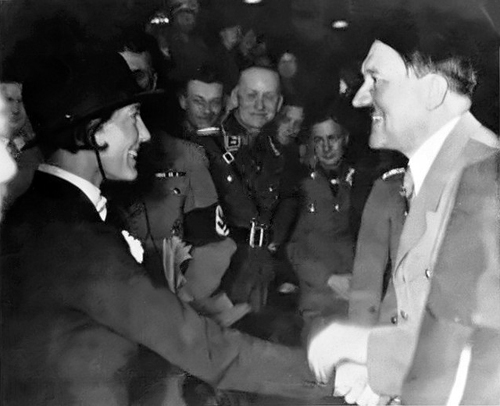 Adolf Hitler greets horse rider Irmgard Georgius during a riding show in Berlin