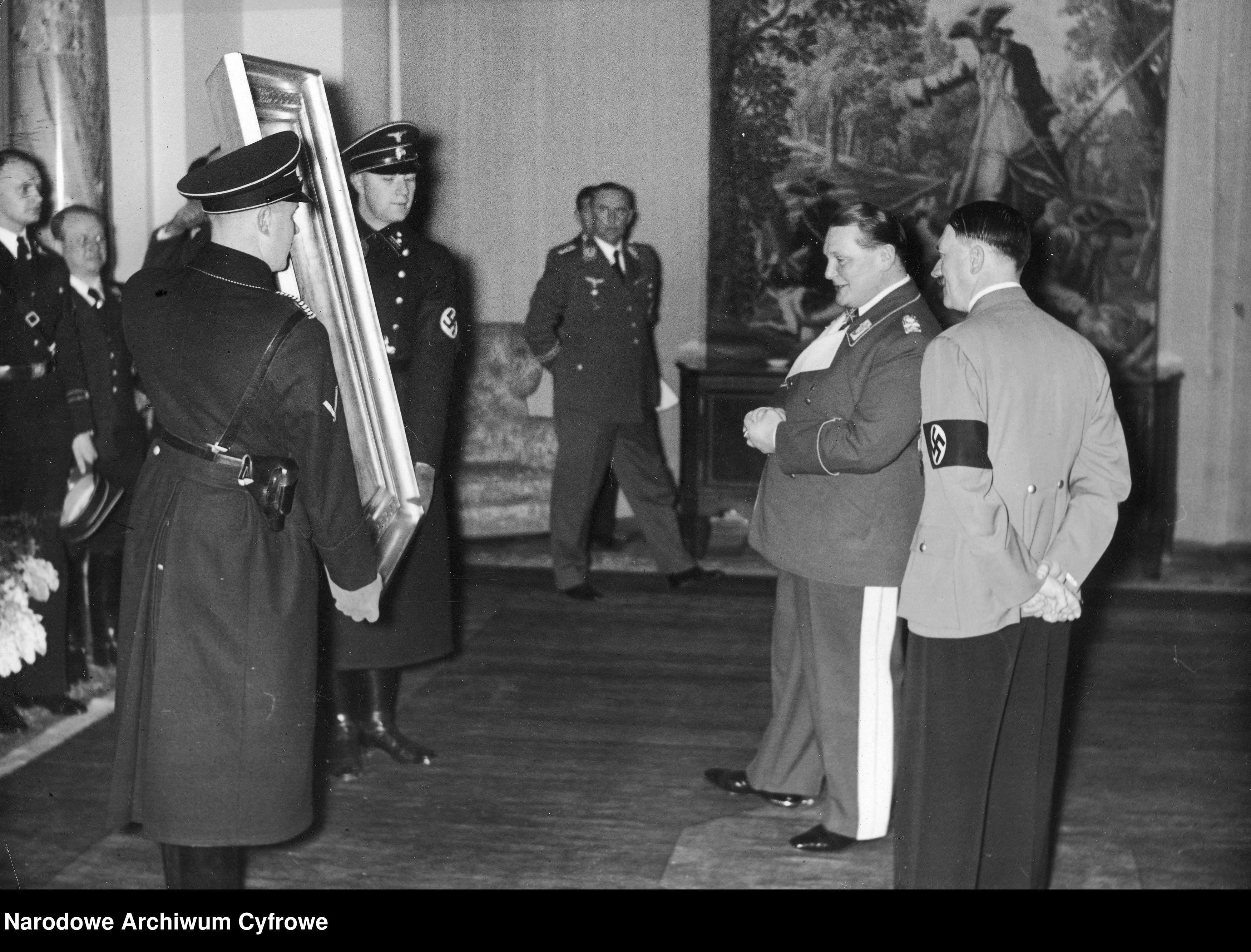 Adolf Hitler offers Göring the painting The Falconer by Hans Makart for his Birthday