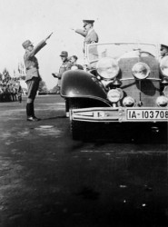 Adolf Hitler greets Hedwig Gustloff, widow of Wilhelm Gustloff at the launch of the Wilhelm Gustloff ship