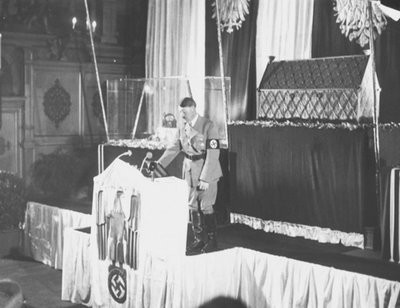 Adolf Hitler speaks at the opening of an exhibition in the House of German art in Munich