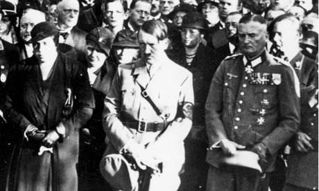 Adolf Hitler with Bavarian party members at a remembrance ceremony for former military forces in Nuremberg